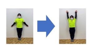2,この3点を壁につけて、最後に手のひらが正面を向くように壁につけます。