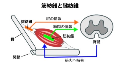 この張力を緩める際に注目したいのが、腱紡錘:けんぼうすいと呼ばれる固有受容器(いわゆるセンサー)です。